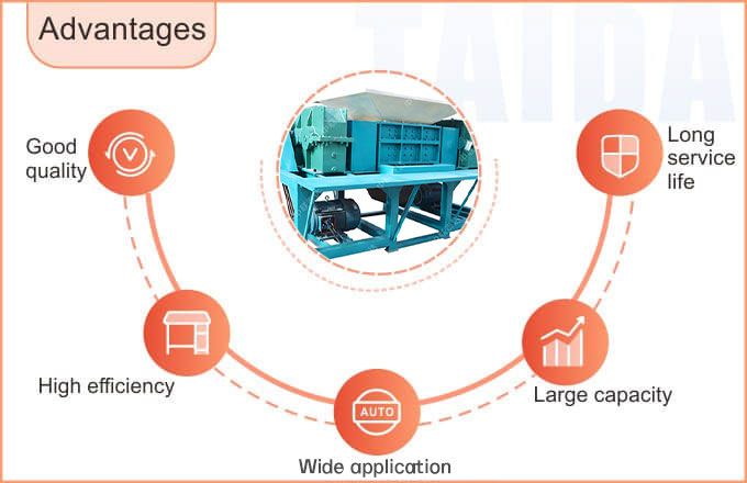 Taeda double shaft shredder is a kind of energy saving and environment friendly shredding equipment. It adopt imported material for knife head, which makes machine durable. It is characterized by compact structure , low speed, large torque, less vibration, low noise and less pollution.