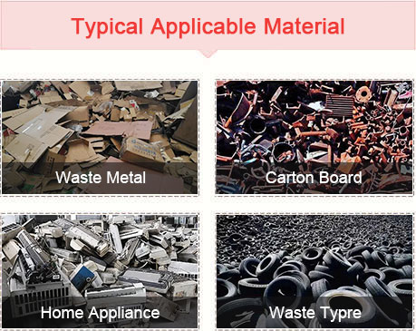 【Applicable material】: suitable to shred waste bottle, domestic appliance, duct, mold, cart, tyre, metal, household wastes, plastic, rubber and other various wastes.
