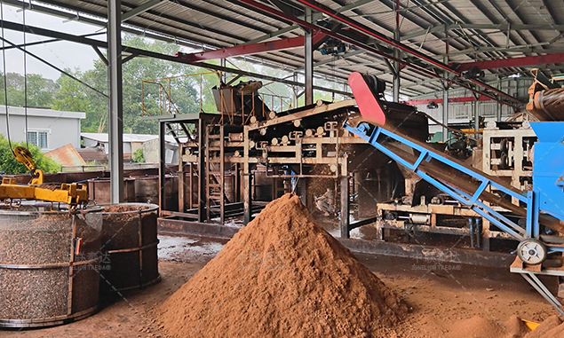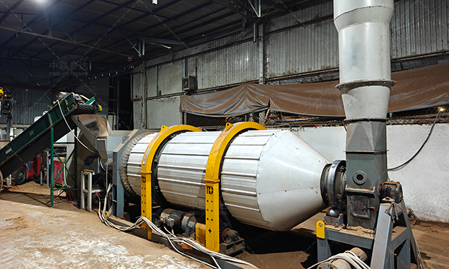 3、【Dehydration system】 After cleaning, cocopeat is sent to the high-pressure double roller press for deep dehydration treatment. After 3 sets of roller pressing, weight of cocopeat is reduced by more than half and the moisture content is about 50%. After above procedure, cocopeat can be sent to drying system or simply sun dried.