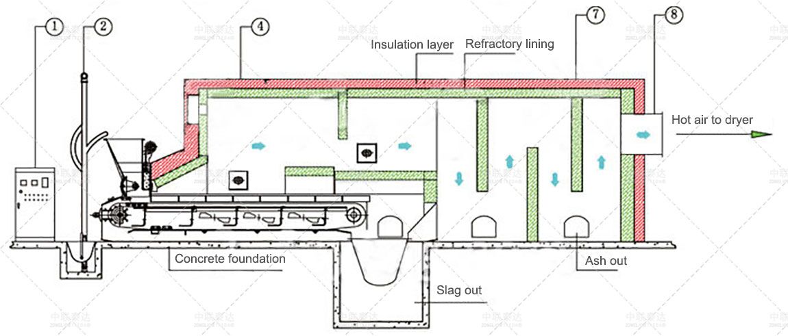TDZRL direct chain grate furnace is a kind of direct hot air furnace takes coal or firewood as fuel, and outputs high temperature hot air.