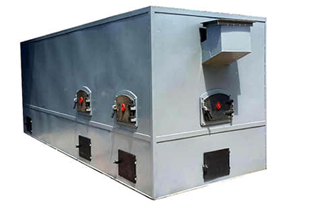 This kind of furnace merges combustion and ash sedimentation into a whole. It adopts heat-resistant furnace grate where coal will be burnt. Coal slag will drop in slag-out room. Hot air produced by burning will settle in sedimentation room and be used as clean heating medium after mixing with fresh air. We can also provide indirect-heating technology heat exchanging type furnace whose hot air produced is not so high. Thermal efficiency of Taeda coal fired hot air furnace can reach 60-75%. Please contact us if you have relevant demands.