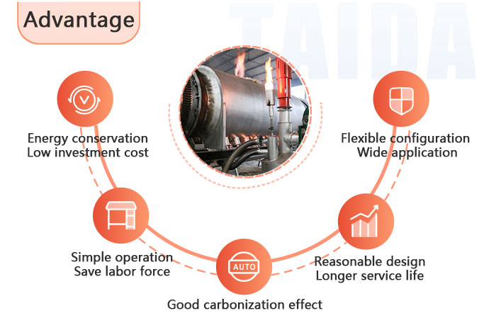 Continuous Carbonization Furnace produced by Taeda Company can be easily operated. It adopts horizontal continuous rotar drum which can do constant production and save labor force.