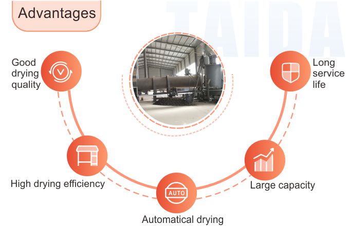 There is a whole set of equipment which holds 10 to 200t/h output capacity. We can also customize drying machine according to customer’s demands.