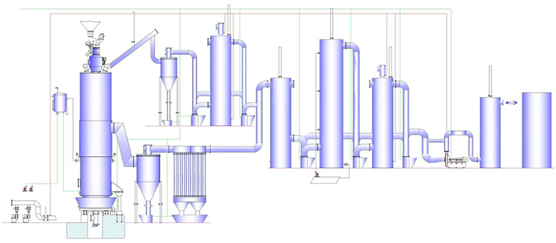 4. Tar produced in upper coal gasifier is mainly light tar; less dust brought out; coal gas is purified by electric light and electric catching focal treatment.