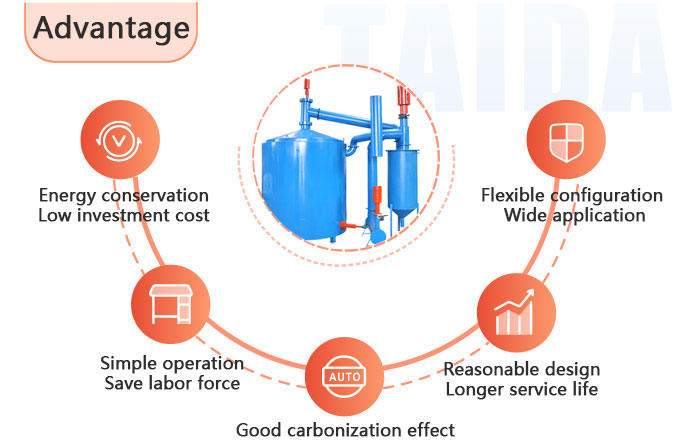Compared with similar equipment, Taeda hoisting carbonization furnace adopts new design and structure. Temperature in carbonization furnace can increase fast and flue gas produced can be recycled. It consums less energy and causes less emission.