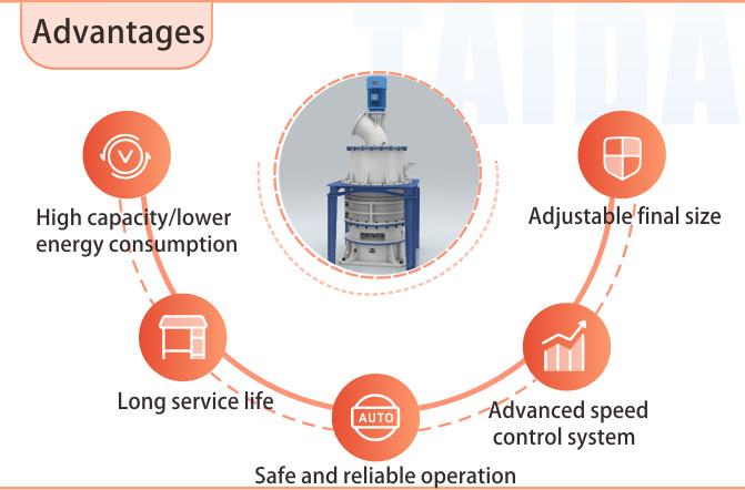 Special intelligent speed control system makes grinding process more uniform,final size finer and grinding capacity higher. Prodution efficiency can be improved at the same time.
