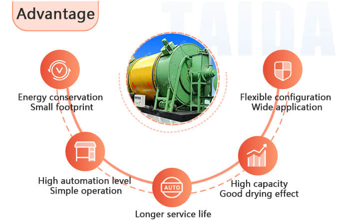 There is a whole set of equipment which holds 1 to 5t/h output capacity. We can also customize drying machine according to customer's demands.