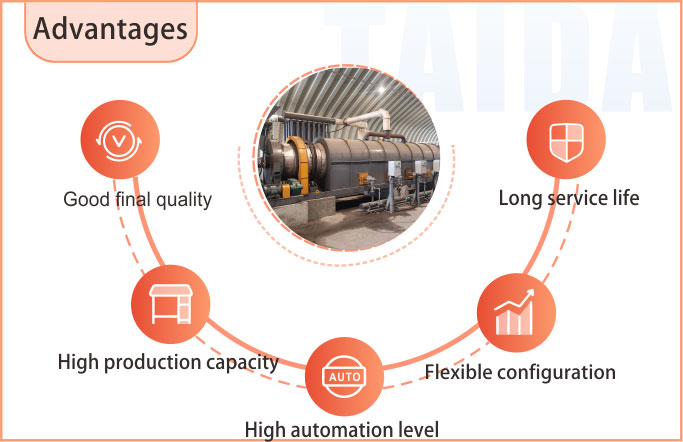 Scientific structural design makes longer service life. We can configure customers with feeding equipment, cooling equipment, exhaust heat utilization equipment, dust collecting equipment and purification equipment. Whole system holds reasonable design.