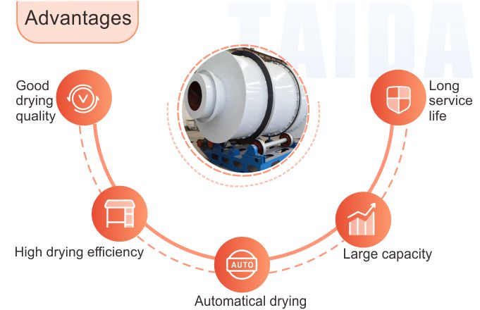 During drying process, Taeda fully considers hardness and moisture features of sand materials so that Taeda ore slag dryer can adapt to various sand materials and used for me