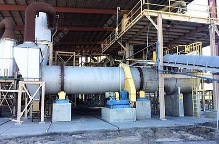 Taeda slag dryer consists of rotary drum, lifting plates, transmission part, support device and seal ring.  Wet materials are sent to feeding hopper by conveying device. Through feeding hopper, raw materials will be sent to feeding end of mining dryer. Inclination angle of feeding end is larger than natural inclination angle of raw material so that raw material can flow to dryer smoothly. Mining dryer drum is a rotary drum which inclines slightly. Materials enter dryer from higher end. Hot air enters dryer from lower end. Materials contact with hot air countercurrently. There is also situation where materials and hot air enter dryer from samed end. Along with the rotation of drum, materials move to lower end under the force of gravity. During the moving process, wet materials are heated by hot air and moisture is evaporated. Dried products will be conveyed out through conveyor. There is lifting plates set inside drum wall and materials will be scattered. Thus, contact area between material and hot air is enlarged and drying speed is improved. Exhaust gas will pass by cyclone dust collector and pulse bag filter before discharging to air.