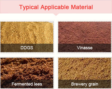 Taeda® spent grain dryer can be used to dry spent grain, DDGS/DSG/BSG, brewery grain, yellow vinasse, rice grain, fermented spent grain, green barley spent grain and other similar materials. Spent grain dryer is developed and designed specially for spent grain products based on OSA dryer. It is featured in high capacity, small footprint, low energy consumption and stable running performance. Spent grain dryer is widely applied for drying spent grain material drying. Taking the final product got from one fermented spent grain drying customer as index example, fermented protein content in final product is high and protein utilization is high. Activity of yeast, lactic acid bacteria, spores, beneficial bacteria and B vitamins in fermented process is kept well. These beneficial bacteria can be used to adjust intestinal microbial environment, improve digestion function and restrain reproduction of pathogenic microorganisms. Dried spent grain is widely applied as fermented feedstuff characterized by good palatability and mellow smell so that to improve animal's appetite and food intake amount. After being put into feedstuff, fermented spent grain feedstuff holds superior performance in terms of production performance index for eggs, pigs, cow and fattening cattle.